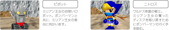 ミリアン王女を救出に向かうボンバーマンだが、その前にはやくも謎の敵が立ちはだかるのだった…。