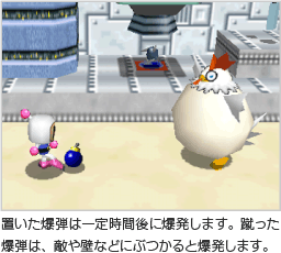 ボンバーマンが行えるアクションです。変形したり、ルーイに乗ったりするマップでは、アクションが変化します。 |