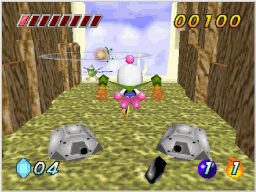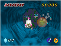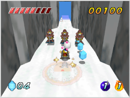 一部のマップの開始時には、ボンバーマンは「パワードギア」と呼ばれる特殊パーツと合体して変形し、海や空を移動できるようになります。また、ルーイと呼ばれる生きものに乗ってプレイするマップもあります。 |