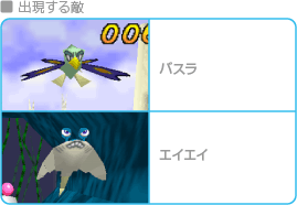 ボンバーマリンになって水中で対決するぞ。敵の魚雷を前後左右にすばやくかわして、落ち着いて弱点の顔を狙おう! |