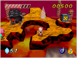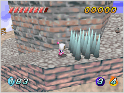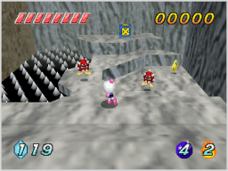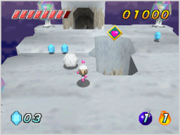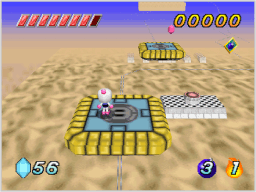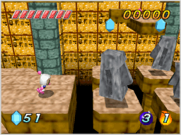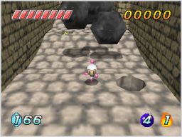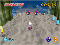 迷路のような地形が多いパズル性の強い面です。このエリアにはソルトボムでしか倒せないシオカケロンが登場しますが、ソルトボムは他の敵には通用しませんので取る時は注意して取りましょう。また、ボムアップを取ると通常の爆弾に戻ります。 |