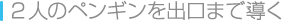 出口には2人が同時に着く必要があります。着くタイミングがずれるとクリアできないので、あらかじめ2人を壁に寄せるなどして、出口までの距離を同じにしておく必要があります。 ![]() |