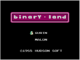 Wii本体の電源を入れ、Wiiメニュー画面で『バイナリィランド』のチャンネルを選んでください。タイトル画面が表示されます。 |