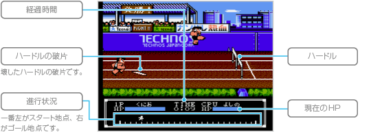 を押すとジャンプし、ハードルを飛び越えることができます。飛び越えられない高さのハードルもあります。