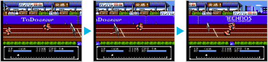 相手に追いつけずに画面外に消えた選手は、HPが少し減った状態で画面に復帰します。
