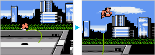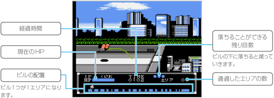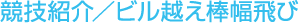 1人の選手が記録に挑む競技です。ビルからビルに飛び移り、ゴールをめざします。 |