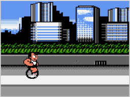 棒や一輪車を使ってビルの上を駆け抜けていき、ゴールをめざします。複数の選手がゴールした場合は、ゴールした時間が早い順に順位が決まります。特定のアイテムを買っていない場合は、ビルの下に4回落ちると失格になります。