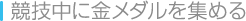 コースに金メダルが落ちていたり、相手を攻撃すると金メダルを落としたりすることがあります。競技によっては、移動方向や相手との戦いかたを工夫することで、多くの金メダルを獲得することができます。 |