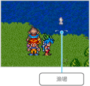 主人公が先頭にいる状態で、バトル終了後にときどきフィールド上に現れる漁場に近づいて |
