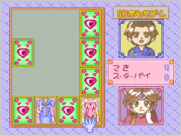 トランプの「神経衰弱」と同じルールです。カードをめくり、同じ絵柄が出たら1ポイント獲得し、再度カードをめくることができます。外れた場合は相手の順番となります。すべてのカードをめくって、ポイントが高い方の勝利です。 |