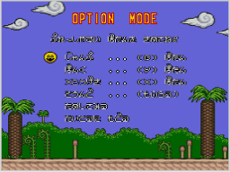 で決定してください。「げ〜む すた〜と」を選ぶとゲームを開始し、「ぼたん かえる」を選ぶとオプションモード画面に進みます。