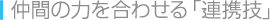 戦闘では「連携技」と呼ばれる強力な技を繰り出すことができます。「連携技」には、2人の技を組み合わせる「2人技」、全員が一斉に技を繰り出す「3人技」があり、1人技よりも効果的にダメージが与えられます。 ![]() |