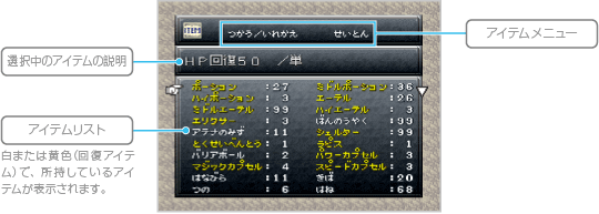 持っているアイテムを使うことができます。使いたいアイテムを |