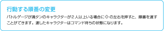 いずれかのキャラクターのバトルゲージが満タンになると、そのキャラクターのコマンドが表示されます。