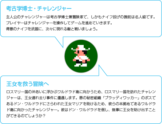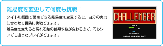 『チャレンジャー』は1985年10月15日に発売されたアクションゲームです。このゲームでは横からの視点の横スクロールと、真上からの視点のトップビュー、操作方法が異なる2つの画面でのアクションが楽しめます。