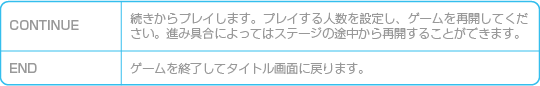 ゲームオーバーになるとゲームオーバー画面が表示されます。 |