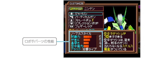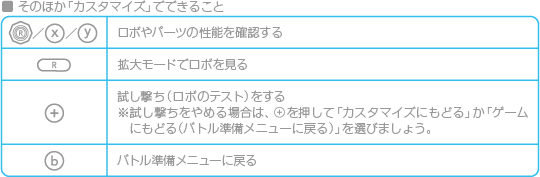 カスタマイズ画面でロボやパーツを選び、 ![]() ![]() ![]() |