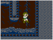 上下を押すと、クサリをつかんでのぼり降りできます。