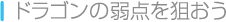 ドラゴンは攻撃した部位(頭や首など)によって、与えるダメージが変わります。特に、弱点の部位は斬りつけたときに赤く光ります。弱点を狙って攻撃し、効果的にダメージを与えましょう。 |