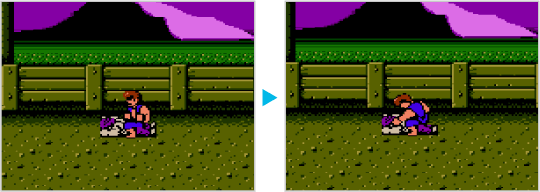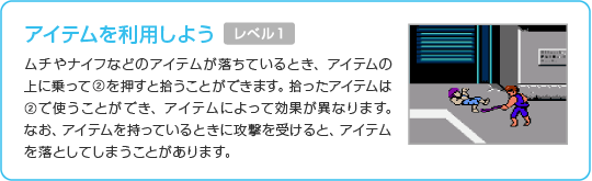 レベル7になると、回し蹴りが旋風脚にパワーアップします。敵がかがんだ状態のときに