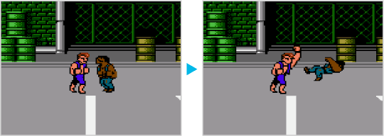 を押すと、アッパーカットができます。敵にパンチやキックを続けて当てると、かがんだ状態になります。