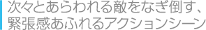 敵は扉やはしご、ときにはヘリコプターなど、あらゆるところから出現します。主人公はさまざまなアクションを使って迫りくる敵を倒しながら進みます。 ![]() |