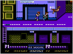 「2P PLAY」には2つのモードがあります。 「2P PLAY A」は味方同士の攻撃があたらないモードで協力プレイができます。「2P PLAY B」は味方の攻撃があたるモードでプレイヤー同士で戦いあえます。 1Pはビリー、2Pはジミーを操作します。 |