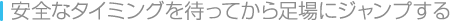 | MISSIONによっては、消える足場や回転する足場が仕掛けられています。それぞれ出現と消失、回転と停止のタイミングがあるので、じっくり見てからジャンプすると安全です。 | ![]() |