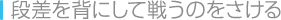 | 崖やビルの上から落下すると即死してしまうことがあります。段差が背後にあるときは、敵の攻撃で落下するのを防ぐために、ジャンプして敵の背後に回り込んでから戦うのがオススメです。 | ![]() |