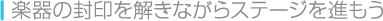 各ステージのボスを倒すと、楽器が手に入ります。 |