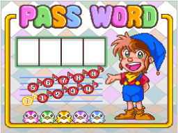 以前プレイしたときにパスワードを控えてあれば、入力して続きからプレイできます。 ※ミロンのスーツパワーや集めたアイテムは初期状態にもどります。 |