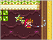 ステージ2以降でボスと戦うには、前のステージで手に入れた楽器の封印を解いておく必要があります。また、楽器の封印を解くと、使えるアクションが増えます。「スターオンプ」をすべて集めてから、迷宮エリアの前にある「音楽家の家」に行ってみましょう。楽器の封印を解除してもらうことができます。 |