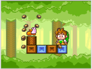 「マジカルスーツ」や「ふわふわシューズ」といったアイテムは、ブロックのなかに隠されていることがあります。多くのブロックを壊してアイテムを集め、ミロンをパワーアップさせましょう。 |