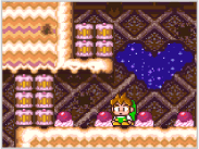 エリアによっては、壁がミロンの行く手をさえぎっていることがあります。このような壁の一部は、壊せるブロックで構成されていることがあります。壁を壊した先には「スターオンプ」や「めいきゅうのカギ」といった、貴重なアイテムが隠されていることが……。 |