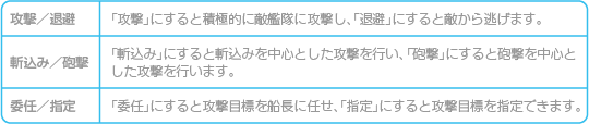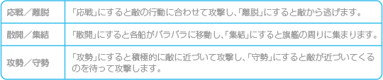 自艦隊の大まかな戦闘方針を変更します。 ![]() |