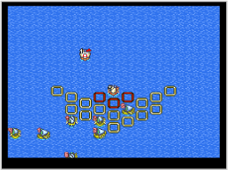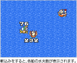 旗艦は海戦コマンドを選んで、「移動」や「攻撃」を行います。旗艦以外の自艦隊の船には、「作戦」で指示を出してください。なお、「情報」「作戦」「アイテム」は何度でも実行できます。