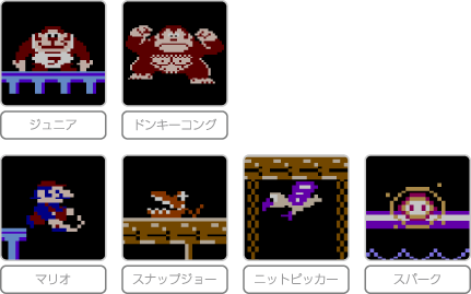『ドンキーコングJR.』に登場するキャラクターを紹介します。