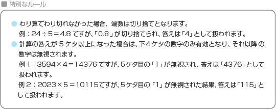 数字→記号→数字の順にとると自動的に計算されます。答えの数字をもとにして計算をくり返し、数字を目標と同じ値にすればクリアです。間違えた場合は、 ※「CALCULATE B」で最初に与えられた数字はリセットできません。