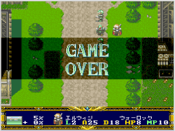 戦闘中に、敗北条件のうちどれか1つでも満たしてしまうとゲームオーバーとなり、自動的にタイトル画面へ移ります。 |