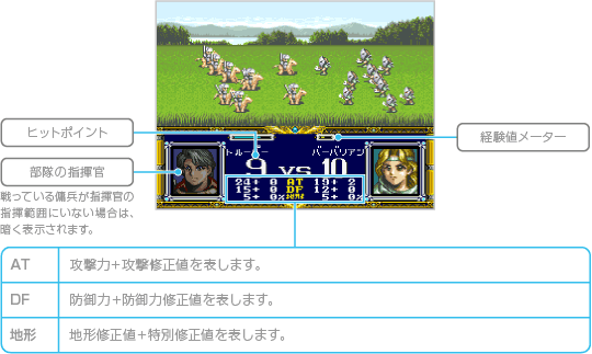 ユニットが攻撃を行うか、敵から攻撃を受けると攻撃画面になります。