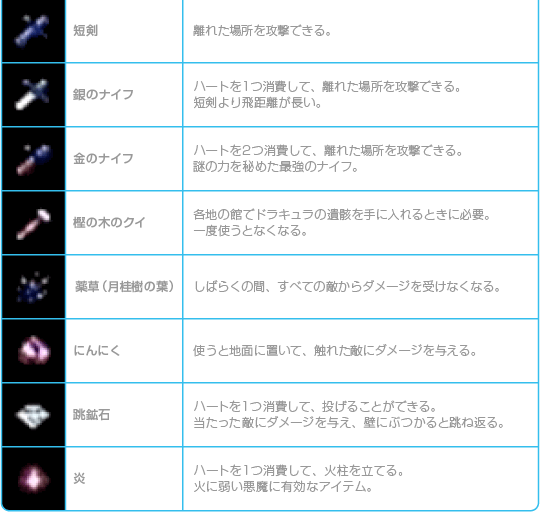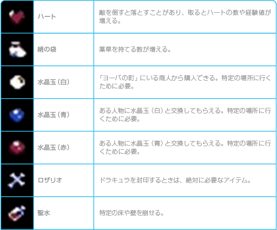 ドラキュラの呪いを解くために必要なアイテムです。各地の館にあります。