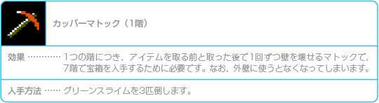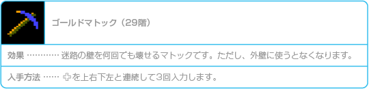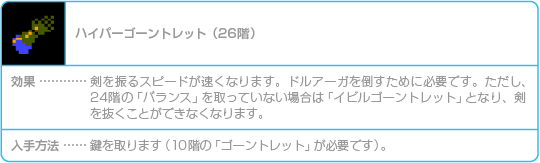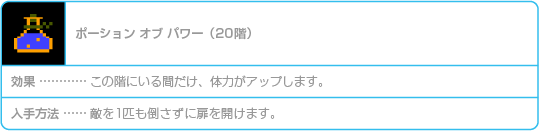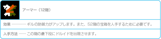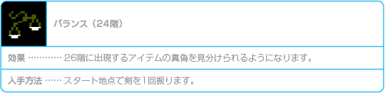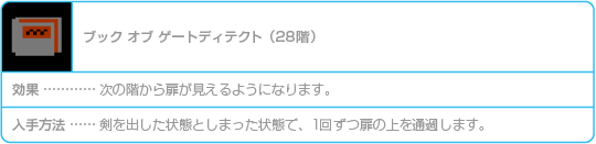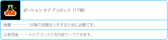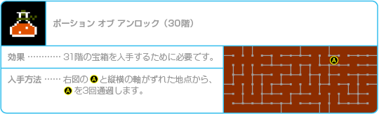 ここでは30階までの宝箱の発見方法と、アイテムの効果を紹介します。
