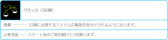 31階から上の宝箱の発見方法と、アイテムの効果を紹介します。