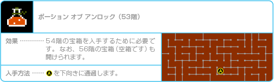 ※55階には宝箱がありません。また、56階の宝箱は空で、アイテムは入っていません。