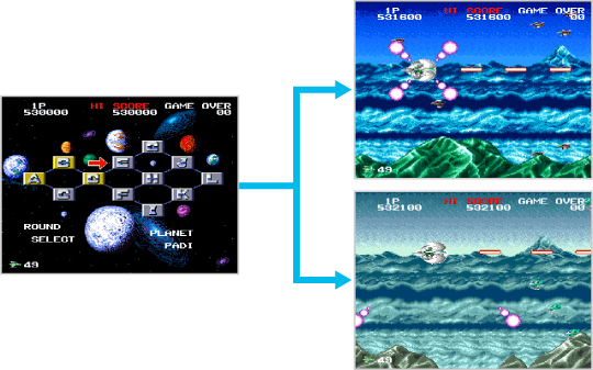 ラウンドをクリアすると、次に挑戦するラウンドが選べる場合があります。どちらのラウンドに進むかでエンディングが変わるので、いろいろなルートを試してみてください。 ![]() |