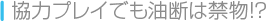 協力プレイでは同じステージを2人同時にプレイできるため、効率よくステージクリアをめざすことができます。ただし、お互いのタマゴンが吐く炎に当たってしまうと、一定時間動くことができなくなってしまうので注意してください。 |