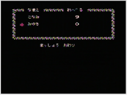 で決定してください。次にプレイする名前(データ)を選んでください。「なまえ まっしょう」を選ぶとデータを消すことができます。