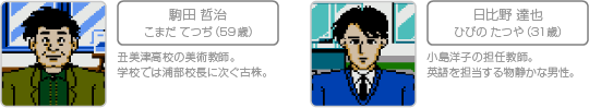 このゲームに登場するおもな関係者を紹介します。 ![]() ![]() ![]() ![]() ![]() ![]() |
