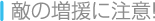 ターンが進むと、敵の砦から増援が現れることがあるので注意しましょう。増援は、砦の上にユニットを移動させると出てこなくなります。 |