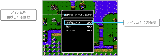 預かり所に預けてあるアイテムを確認できます。 ![]() |